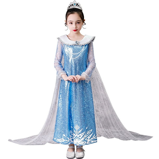 Disney Frozen Girls Elsa Costume Blue Snow Queen Princess Dress Up With Long Train Halloween Christmas Party Sequined Cosplay Princess Dress Princess Dress Upelsa Costume Aliexpress